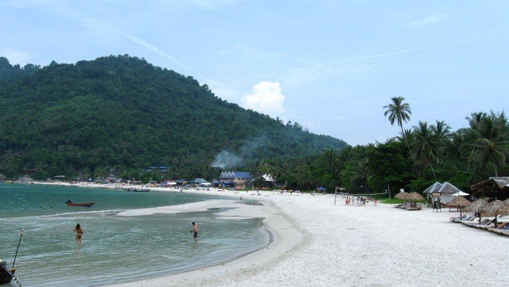 Taken from the same rocks every bit the previous shot, Teluk beach is next 1 north. This is where the steep jungle rails from the southward coast's busier Flora Bay hits the eastward coast. Teluk is the site of the Teluk Ke Ke military camp site.